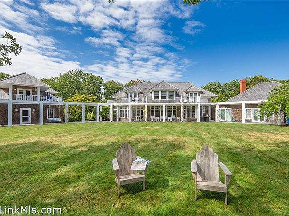 Spectacular 20.8 acre Boldwater Association waterfront estate on Edgartown Great Pond with breathtaking views over 1,000 ft wide low brushy pond front terrain and across the 3/4 mile wide Lyles Bay, dreamy Swan Neck Point, the 1.5 mile wide main pond and barrier beach to the ocean beyond. The handful of well pruned trees on the property enhance the water views. The sophisticated and charming quality house was built by Andrew Flake, arguably the finest Vineyard builder over the last 40 years. Mark Hutker created an innovative design with an arc shape nautical theme so every room faces the water. The 3 second floor bedrooms enjoy large balconies and the first floor primary bedroom with separate sitting area opens to a nice deck and quiet garden sanctuary. The hand made luxury kitchen cabinetry and extensive woodworking were done by Smallbone, a British Company noted for time honored design and craftsmanship. Adding to this estate, reflecting decades of careful planning and development, is a lovely private pool and pool house, 4 room guest suite over the garage with large balcony, two stone wall enclosed specimen fruit tree meadows, a large field circled by a grand stone wall, an idyllic lily pond and 2 miles of private trails. Keep boats and small craft on your mooring at waters edge for a short trip to the 3,000 ft Boldwater private barrier beach. Boldwater is 38 homesites on 450 acres with 150 acres of conservation and abuts approximately 1,500 of additional conservation land and a few large estate. A most remarkable rural area convenient to town and the airport. (14.4 abutting acres with grand meadow on 3 Jacobs Neck Rd is available for purchase separately)