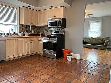 Beautiful 3 bedroom on 3 floors! Master bedroom with vaulted ceiling and 2 closets. Updated eat in kitchen with stainless appliances and terracotta tiled floor! The apartment has an enclosed 3 season porch along with a dedicated outdoor patio with table, chairs, and a firepit. Corner lot provides a large yard/outdoor space. Free laundry in basement + storage. 2 outdoor spots included + 1 garage spot. Available NOW OR March 1st, 2025 Owner pays for water, snow removal, landscaping. Tenants pay for gas heat/hot water. Window A/C units provided! Pet friendly. **Brand new shower currently being installed. Updated photos to come.** Please contact Brian with any questions and viewing availability. Landlord pays for water and snow removal. No last month up front.