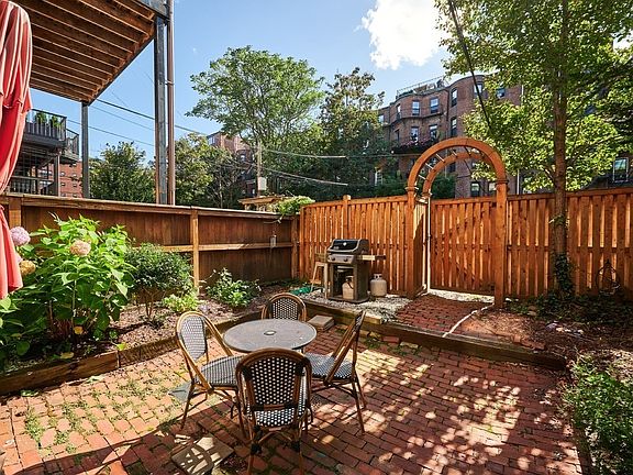 Brownstone unit on picturesque Braddock Park with a DEEDED PARKING spot. This unit offers two private entrances and a large exclusive private patio that makes it perfect for entertaining. This modern South End condo features a modern kitchen and bathroom with quartz, stainless appliances, in-unit laundry, hardwood flooring throughout and a private storage area. The Building has strong condo reserves and no major upcoming expense. ** Parking spot is directly behind the building.