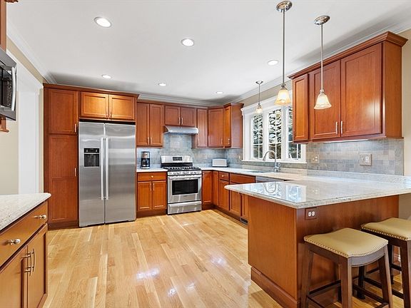 - Features: Flooring - Hardwood, Dining Area, Pantry, Countertops - Stone/Granite/Solid, Wet Bar, Breakfast Bar / Nook, Exterior Access, Open Floorplan, Recessed Lighting, Slider, Stainless Steel Appliances, Wine Chiller, Gas Stove, Lighting - Pendant, Crown Molding