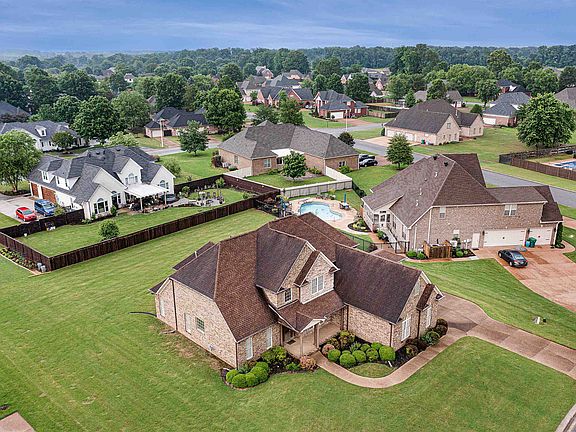 Custom 3284 sf +/-home in Northwest Jackson Tennessee for Sale located in prestigious Northpointe Subdivision. This stunning home has a large eat-in kitchen with a breakfast bar & a hearth-room with ceramic tile, a large pantry & beautiful wood cabinets. The Great Room has soaring Vaulted ceilings, a gas fireplace with sconces above and wrought iron railing on stairs. The primary bedroom has double tray ceilings, is ensuite with a whirlpool, separate shower & a walk in closet with window. Another bedroom is split down and 2 more bedrooms up along with a 31x12 Bonus room w/closet. The 17x15 Covered back porch is for grilling and chilling & there is a three car garage with built in Storm Shelter/Safe Room.