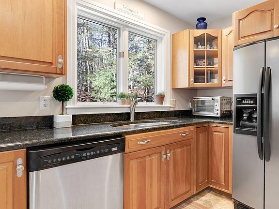 Situated in one of Freeport's most desirable and conveniently located neighborhoods, this beautiful colonial features many recent updates including new windows, new roof shingles, and fresh exterior paint. The front porch and the breezeway have been rebuilt with mahogany decking and Azek trim. Inside you'll find a welcoming space that includes a spacious kitchen with cherry cabinets, granite countertops, and stainless appliances. Access to the large side deck is from the dining room which is open to the living room. A dedicated office makes working from home much easier. With large windows in the open stairway, the second floor hall is sunny and inviting. The primary suite including a full bath with tiled shower, two additional bedrooms, and a full guest bath are all on the second floor. Central air conditioning, a laundry area in the mudroom, and a generator hookup are just some of the home's amenities. The finished basement affords bonus space with both family and exercise rooms. And there is even more finished space in the guest suite with separate entrance over the garage which also makes a fantastic artist's studio. This wonderful home is just 5 minutes from both downtown Freeport and South Freeport Harbor.