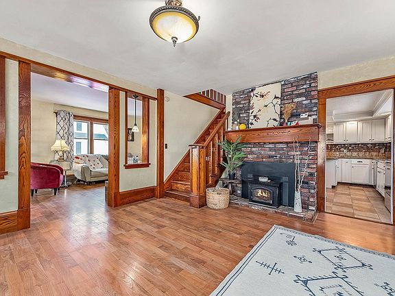 Situated on a quiet, dead-end street, this home will charm you the moment you open its stained glass front door with its high wainscoting, vintage wallpaper, and beautiful Arts & Crafts woodwork. There are two spacious, side-by-side living areas with large, light-filled windows, and a pellet stove. The kitchen is outfitted with SS appliances, soft close drawers, granite countertops & a cozy breakfast nook. The Primary bedroom is on the first floor and boasts a newly renovated en suite bath and a glass slider out to a large, private deck. Upstairs there are 3 more bedrooms, beautiful hardwood floors, and an updated bath with a restored clawfoot tub. The backyard is fenced in and there is a detached 'wood shop' with a new roof, its own breaker box & heating unit. To add even more APPEAL to this desirable package, this home has a BRAND NEW, fully paid-off solar system, which will save the next homeowner $55K in energy costs in the next 25 years. First showings will begin at the Open House on Saturday, March 2nd from 11-1:00 PM & Sunday, March 3rd from 11-1:00 PM.