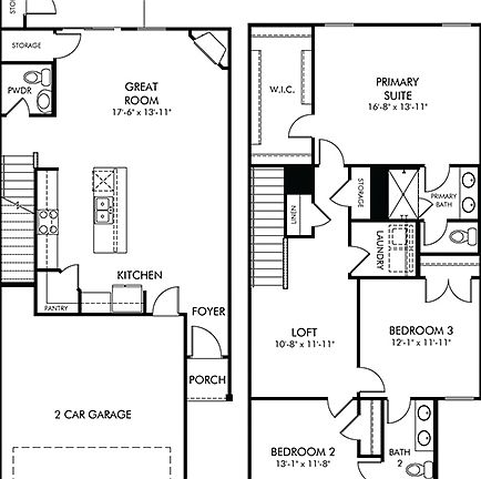 The kitchen's large island and the great room's fireplace make this the perfect place for gathering with family and friends. White cabinets with white granite countertops, EVP Plank flooring and carpet in our Crisp (2) Package.