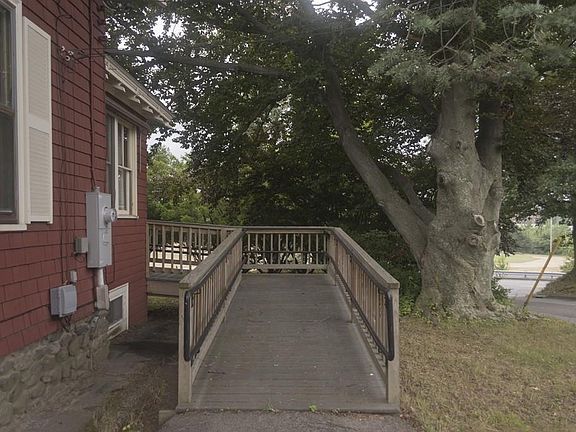 Adorable cape located on a corner lot near the park. Easy commuter access to 190, 2 car detached garage and plenty of off street parking. There are some first floor handicap accessible features in the Bedroom and full bath. 3 of the 5 bedrooms have walk in closets and there are hardwood floors throughout most of the house. The front 4 season porch is spacious and adds to the year round living space. The second floor full bath has traditional wainscoting and soaker tub. There are attractive awnings, a new roof and lots of details not found in todays cookie cutter homes! The no stairs features of a deck leading into the house from the parking/garage area leads into a spacious mudroom. There is a full ramp with composite flooring at the front entrance for any accessibility issues.Easy to show! Call today
