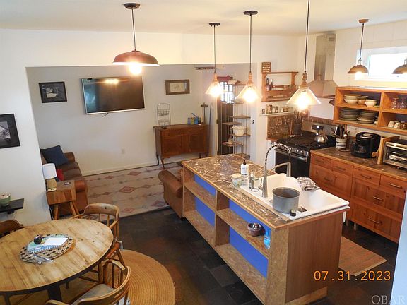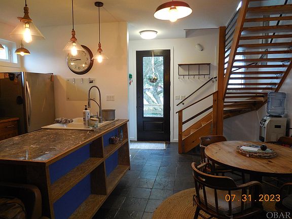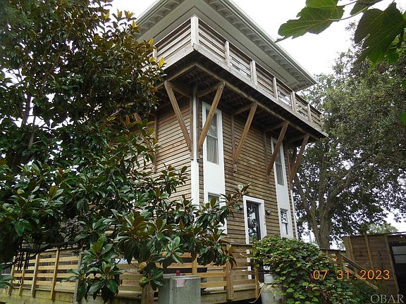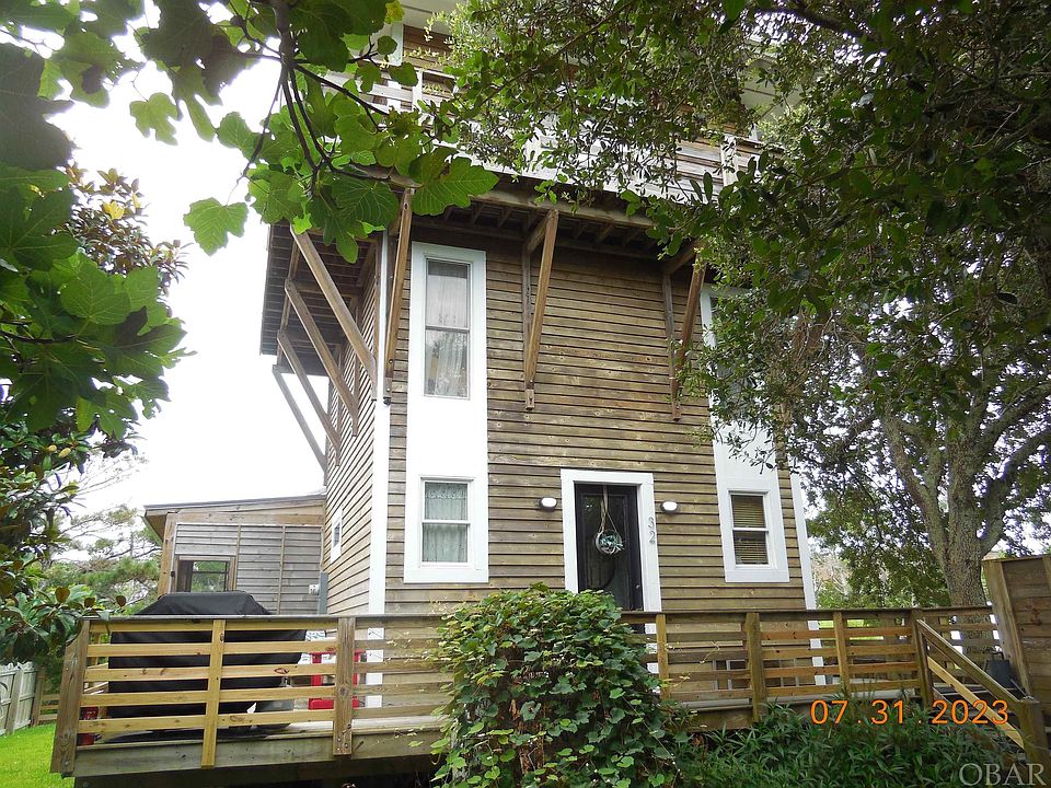 "Natural Choice" is a 3 level, coastal contemporary, 2 bedroom/2 bath home located off Lighthouse Road in an eclectic neighborhood featuring year-round residents, second homes, working fishermen, hunting guides and boat works. A taste of everything Ocracoke! Beautiful trees and natural landscaping. "Natural Choice" was built with sustainable design with smart choices such as "on demand" hot water heater, bamboo flooring, mini-splits for heating and cooling, a 4 bedroom environmentally responsible septic system, a private reverse osmosis water system (new in 2022) and a metal roof. The first floor is an open kitchen/living/dining concept with a gas stove w/ exhaust hood, double farm sink, slate flooring, ceiling fan and a tiled bath with a barn door topped with a beautiful piece of stained glass. There is access to a spacious screened porch of the living area and the entrance is accessed by an open deck on 3 sides of the home. The second floor consists of a bedroom, large living area, custom "built in" shelving, washer/dryer area, ceiling fan and bamboo flooring. The third floor is an owner's suite with high ceilings, many windows for natural light, a whole wall custom closet system, tiled bath with jetted tub and access to a walk-around open deck. There are 2 exterior sheds to store your beach or water sport equipment and an outdoor shower. The septic system is large enough to support a 2 bedroom expansion. Furnishings convey with a few artwork exceptions. "Natural Choice" is currently a second home; however, this home would make a wonderful primary home or vacation rental.