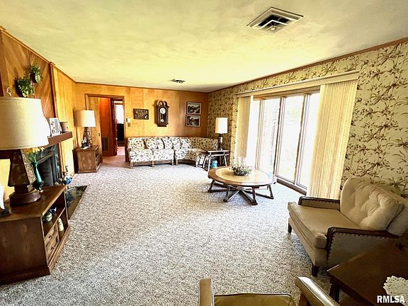 This custom built home has over 3100 square feet situated on almost an acre lot. Home features a magnificent great room with exposed wood beams and beautiful fireplace. There is an additional family room and living room both with wood burning fireplaces. Large eat-in kitchen complete with appliances. Custom woodwork throughout, spacious rooms with open floor plan. Home also features 2 bedrooms and 2 full baths, utility room and 2 car attached garage. Built in outdoor storage room. Convenient location with park and shopping close.