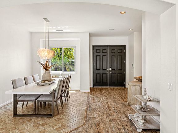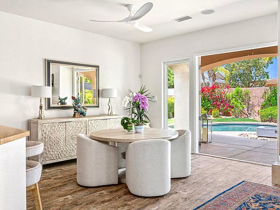 Welcome to 32 Calais Circle--an elegant desert oasis tucked within the gated community of Versailles - ideally positioned in prestigious Rancho Mirage adjacent to Cotino, Disney's exciting new Storyliving community. This beautifully upgraded residence offers the perfect blend of sophistication, comfort, and seamless indoor-outdoor living. Step inside to find high ceilings, an open-concept layout, and refined finishes throughout. The gourmet kitchen features granite countertops, stainless steel appliances, and a sizable dining peninsula and breakfast area that leads to a spacious open plan living area--ideal for entertaining or relaxing in style. The primary suite is a serene retreat with a large ensuite bath, ample walk-in closet, and direct access to the resort-style backyard. Outside, enjoy your own private paradise with a sparkling pool and spa, covered patio, and mountain views--perfect for year-round sunsets and alfresco dining. Additional highlights include a 3-car garage, low HOA fees, and close proximity to world-class golf courses, shopping, dining, and the vibrant culture of the Coachella Valley. Offered furnished with some exclusions. Whether you're searching for a full-time residence, seasonal escape, or investment property, 32 Calais Circle offers an unparalleled Rancho Mirage lifestyle.