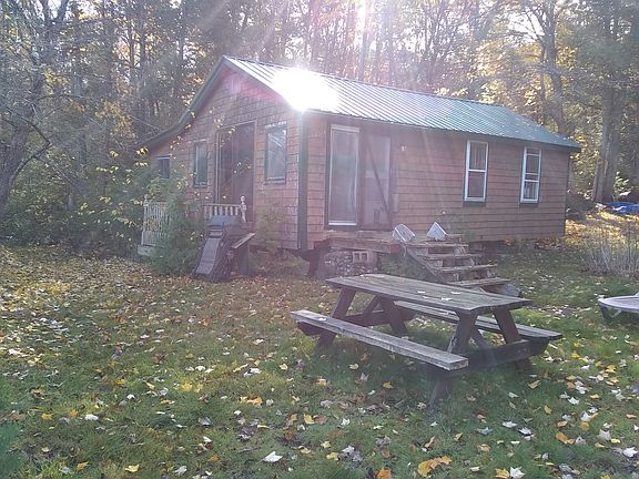 Lakefront cottage with sand beach, 200 feet water frontage, 14 acres of old growth forest, 1300 feet of road frontage. It comes with full septic, running water, insulated for three-season use, bunkhouse, frontage for a second camp, road frontage could be used for several house lots. It's a great private cove for weekend getaways with lots of development potential.