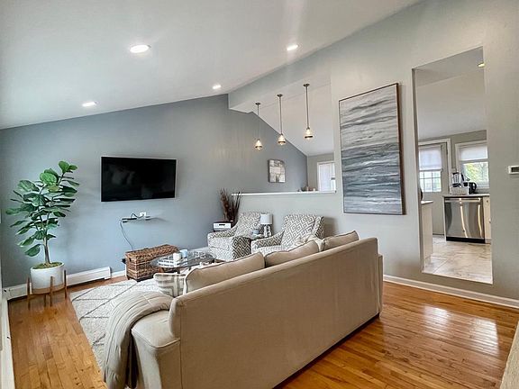 Welcome to 32 Campbell Dr in Parlin, New Jersey, just minutes away from the Garden State Highway and Rt 9. This beautifully renovated split-level home boasts four bedrooms and an inviting open concept floor plan, adorned with gleaming hardwood floors, fresh paint, and recessed lighting throughout. A new roof was installed in 2021, alongside all-new stainless steel kitchen appliances, including a professional hood, washer, dryer, and custom blinds. The gourmet eat-in kitchen, featuring quartz countertops and a farm sink, is a chef's delight. With spacious bedrooms boasting cathedral ceilings, each capable of accommodating queen-size beds, and fully renovated bathrooms, this home offers both comfort and style. Additional upgrades include a full house water filter, tankless water heater, and new storm doors installed in 2021. Outside, the expansive backyard features a large deck and a new brick paver patio, perfect for entertaining and enjoying the outdoors.