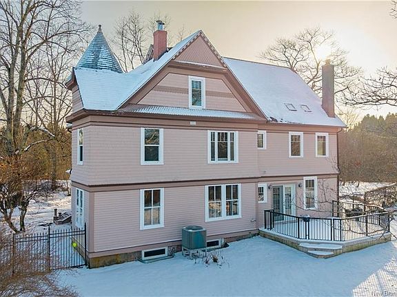 Offering 3+ bedrooms and 2.5 bathrooms across three levels, this large 1876 home sits at the top of Campbell Hill on a half-acre lot just minutes from the centre of St. George. Area is quiet and settled, with mature trees, a paved driveway, and a small pond that adds to the calm of the property. Inside, the home is warm and functional, with cedar floors, high ceilings, original wood details, and a stained-glass front door. The kitchen is spacious and practical, featuring reclaimed wood countertops, two sinks, open shelving, pantry, and room for a table or seating area beside a wood-burning fireplace. A patio door off the kitchen’s family dining area leads to a private deck overlooking the yard, and half bath is conveniently located just off the kitchen and dining space. In addition, the main floor includes a formal dining room and 2 separate living rooms, one with a wood stove and a second near the front door that would be ideal office or den. Upstairs, the oversized primary bedroom features vaulted ceilings, and exposed beams. A shared ensuite with a soaker tub and tiled shower opens into a second bedroom. This level also includes a third bedroom and an additional full bathroom. The third floor offers legal windows with the option to use the space as a 4th bedroom, along with a hidden turret room. A ducted heat pump provides efficient heating and cooling throughout. A solid, well-cared-for home with space, privacy, and flexibility in a great location.
