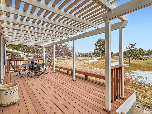 Location, Location, Location. Welcome to one of the premier lots in the coveted 55+ community of Gleneagles Village (GEV) in Highlands Ranch. Home is located on the 17th green of The Links Golf Course with views of the golf course and pond. The great room was extended during the original build to include an open-concept family room (with fireplace), a large kitchen, and a dining nook. This room, as well as the primary suite, open to a large composite deck with pergola above to enjoy the morning sunrises and evenings observing the diverse wildlife. A partial-sized basement boasts private guest quarters, complete with a bedroom, full bath, and family room. The HOA will be painting the exterior of the home in the near future. If you want to make a home in GEV your own - this is the one for you.