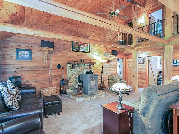 LOG CABIN .. BUILT BY THE HOME OWNERS OWN HANDS.. ALL CUSTOM UPGRADES..EVERY LOG WAS CUT AND PLANED BY THE HOMEOWNER. EVERY DOORKNOB WAS PURCHASED AFTER YEARS OF SEARCHING FOR THE RIGHT ONES. THE KITCHEN IS GRANITE WITH UPGRADED APPLIANCES ... THE LIVING AND DINING ARE ALL OPEN WITH CATHEDRAL CEILINGS.. SO LOOK UP WHEN YOU WALK IN.. ITS A 4 BEDROOM WITH AN OFFICE BUT IT CAN BE CONVERTED BACK TO A BEDROOM AGAIN NP .. 3.5 BATH HOME WITH A 3 CAR OVERSIZED GARAGE AND A 2000 SQ FT COMMERCIAL SIZED GARAGE/WAREHOUSE THAT IS CLIMATE CONTROLLED AND INSULATED WITH A PELLET STOVE AND FANS. THERE IS BUILT IN SHED BEHIND THE 3 CAR GARAGE.. IN CASE YOU JUST NEED IT LOL INVISIBLE FENCING AND LRG DOG PEN STAY AND DID WE MENTION THE FINISHED BASEMENT IS JUST A MUST SEE IN PERSON TO APPRECIATE ...IN THAT BASEMENT IS A BILLIARDS ROOM (POOL TABLE STAYS) HOME COMES WITH SO MUCH STORAGE YOU WILL NEVER FILL IT ..THERE ARE TWO (2) FIREPLACES .. A WOOD BURNING IN THE BASEMENT AND A PELLET STOVE IN THE MAIN LIVING ROOM . SO HEATING THIS HOME IS NOT A PROBLEM. BUT THERE IS MORE. THERE IS SOLAR AND A WHOLE HOME GENERATOR (FOR THOSE LOVELY NJ STORMS WE HAVE) YOU WILL NEVER GO WITHOUT POWER. A NEW ROOF IN 2009 AND A NEW HOT WATER HEATER. FINALLY , 7 PARKING PADS & PAVED DRIVE WAY. (CALL FOR A TOTAL LIST OF UPGRADES) NOW IT JUST NEEDS YOU TO COME AND SEE IT , JUST SIT ON THE FRONT PORCH AND LISTEN.. LOOK AROUND.. ITS 5 ACRES OF HEAVEN... THEN WALK INTO THE HOUSE AND I WILL SEE YOU AT CLOSING.