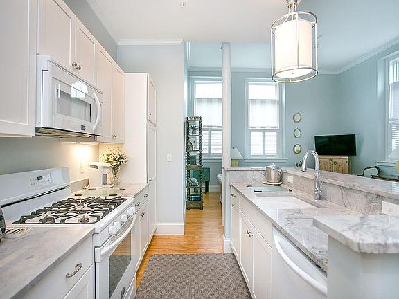Make this quintessential Newport condo home this coming year! Luxury living at its best in this sunlight filled condo nestled conveniently near Spring Street, within walking distance to Thames and Bellevue. Elevator building with TWO ASSIGNED PARKING SPACES and gorgeous ROOFTOP DECK! With soaring ceilings and modern finishes, this condo is the perfect blend of new and historic. Open concept living, kitchen and dining area with large island for additional seating. Ensuite primary bedroom and bath, plus second bedroom with private bath. You'll have the best seats in town to watch Newport sunsets every night from the shared rooftop deck. CENTRAL AC, LAUNDRY IN UNIT. Building professionally managed. Available January 1, 2026