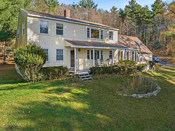 Gilford, NH – Privately located near the Belknap Mountains hiking trailhead, this 4 bed, 3 bath farmhouse with a walkout lower level is simply perfect. Over the years, it has been updated and renovated, always maintaining its country style and charm. There's a spacious farmer's porch overlooking the lush lawns, locally milled wide pine floors, a country kitchen/dining area with farmer's sink and soapstone countertops, shiplap accents, a pantry, a sunny four-season room, and plenty of windows to soak in the forest, lawns, and mountain views. The main level also features two bedrooms, a bath, and a laundry room with a sink and storage space. Upstairs is the beautiful primary bedroom with views, an enormous walk-in closet, a tiled bathroom with granite countertops, custom cabinetry, and a double vanity. Finishing off the upstairs is a second bedroom. In the finished, walkout lower level, you'll find a large workshop, storage room, and access to the two-car garage – which has a bonus room and storage space above. The four acres, which abuts the State Forest, are a mix of lawns, landscaping, fruit trees, and forest, accented by stonewalls. There's also a small barn for additional storage. Located near Gilford Village, schools, the library, Gilford's private town beach, boat launch, and Gunstock Recreation Mountain. Delayed showings begin Saturday 11/12 from 10 am - 2 pm.
