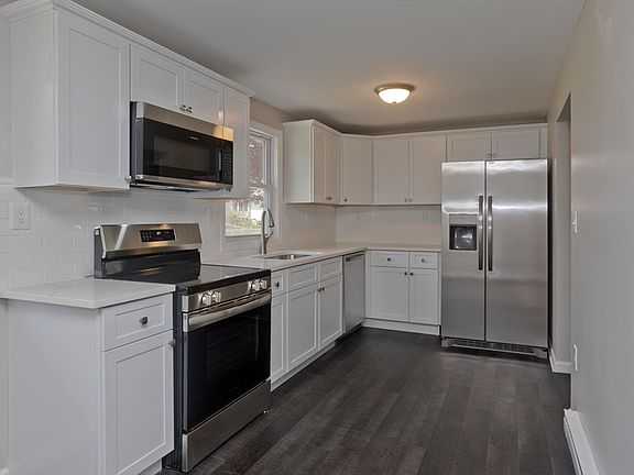 Highest and best due by Monday 5/13 12 noon. Welcome home to 32 Carter Dr. This spacious Ranch offers a large living room with hardwood floors and fire place. The kitchen has been beautifully renovated with all new cabinets, counter tops, appliances and flooring. Three great sized bedrooms all with refinished oak hardwoods. The first floor full bathroom is all newly remodeled as well. This home also offers you the extra space you need with a heated breezeway adding around 330 sqft of additional living space. This home is situated on a nice low traffic street with a nice sized lot. This home also features brand new central AC. Be sure to come visit us this Saturday 10:30am-12pm for the open house. My lender will be on site and we will have coffee and pastries!