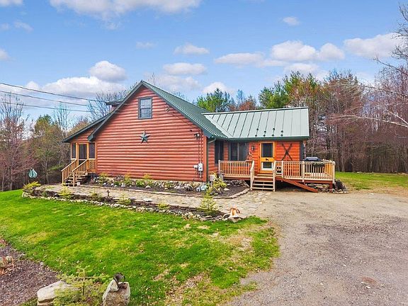 Impressive post & beam Log home in wonderful condition sits privately on 6+ acres. Drive up the driveway and one notices the smart looking green metal roof and screened porch—both new. The setting is beautiful and quiet with the open back lawn and natural landscaping. Inside the home is bright and open with the cathedral ceiling and beams highlighting the stone gas fireplace, granite kitchen and island, and newer stainless appliances. The first floor has the master bedroom and bath plus a new 3-season sunroom and back deck to enjoy the morning sun. Off the dining area is the rebuilt screened porch facing sunsets. Upstairs is a generous open loft with built-ins for a bedroom or family room. The lower level is finished with a spacious bedroom w/ a gas stove, walk-in closet and custom built bathroom. On-demand generator. 2-car garage. Most of the home has been renovated in the past three years and it shows beautifully. Near Webb Lake/Mt. Blue State Park, 20 min. to Black Mt. Ski Resort, 40 min. to Sunday River, and the ITS trail is accessible from your driveway. Great year-round getaway.