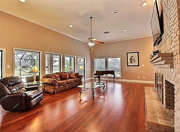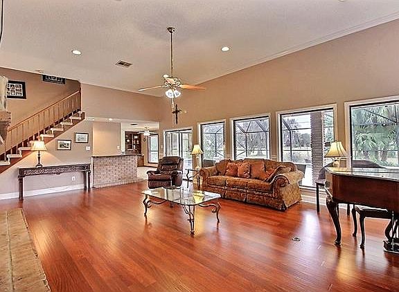 OPEN HOUSE 4/29/17 from 12 to 2PM. Spacious 4 bed/3.5 bath on Grand Ridge Golf Course. Great room with wood floors and fireplace. Giant downstairs master suite w/ fireplace, wood floors, gorgeous bath with Jacuzzi tub and tiled shower. Kitchen with large work/cabinet area and breakfast room. Upstairs gameroom overlooking saltwater, heated and screened pool with spa. Back of house features wall of windows facing pool and golf course. Home office with custom wood built-ins. Landscaping with irrigation system.
