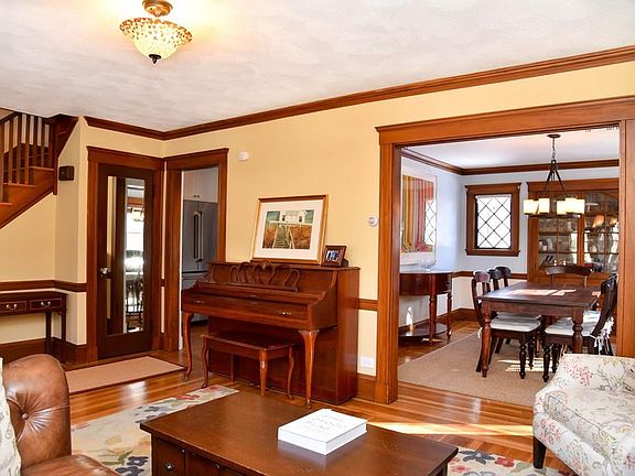 Welcome home! This house is warm and inviting with woodwork you just don't find today. From the french door entry to the fireplaced living room to the newly renovated kitchen with solid wood white cabinets, granite countertops and stainless steel appliances. Old world charm meets new and updated! From the dining room with original built-in to the family room with a sea of windows sunlight just shines through this house. The wood floors flow throughout including the 3 great sized bedrooms on the second floor. The staircase, moldings, chair rail, glass door knobs and attic entry are fine examples of the detail that is part of this home. For additional space, the lower level is a walk out with full bath just waiting to be finished. Bring your ideas! Located on a desirable street in Stoneham. Cedar Avenue offers close proximity to the highway, public transportation, downtown, shopping, and the Fells Reservation.