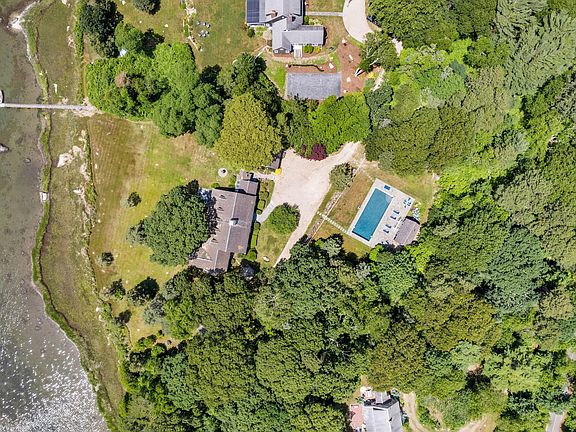 Experience the charm of this vintage 1930s shingle style home, beautifully sited overlooking West Falmouth Harbor on a private and serene 2.23 acre waterfront site. This is a rare offering, that has been in the same family for 70 years. With its own private dock, perfect for boating enthusiasts, to the beautiful gunite pool with charming pool house, it's an oasis that is hard to find. From the spacious and relaxing screened porch enjoy dramatic sunset skies and tranquil views of the inlet, home of Ospreys and Great Blue herons. Inside, the home is filled with period details, three wood burning fireplaces, rich hardwood floors, traditional moldings, built-in shelving and cabinetry. The formal dining room features an antique built-in china cabinet, adding character and charm. The cozy front parlor with rustic beams and fireplace gives the feeling of a bygone era. The large livingrm complete with fireplace and a wall of built-ins is perfect for gatherings and entertaining. The eat-in kitchen, wet bar and pantry blends vintage style with modern conveniences. A multi room primary suite is waterside on the first floor. Many additional bedrms with two fulls baths encompass the second floor. Plenty of room for family, guests, and friends year-round. A two-car garage and large three-bay storage barn offer ample space for vehicles, boats, tools, and outdoor equipment. This exclusive setting provides a peaceful retreat that radiates calm and relaxation, yet it is convenient to the picturesque village, sandy beaches, and scenic bike path.