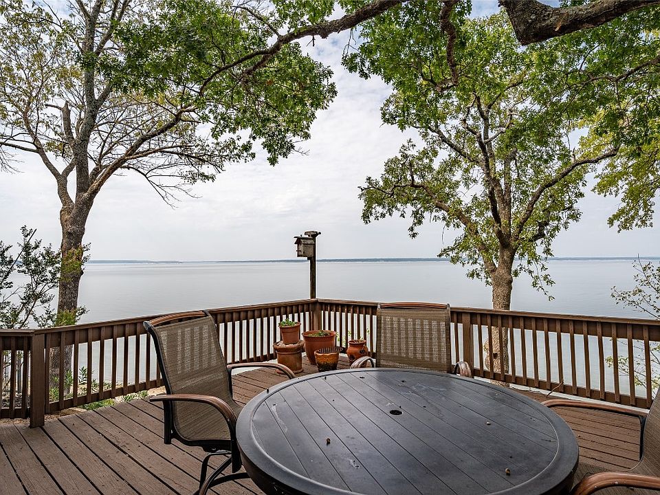 What an incredible view of Lake Texoma with access to the waters edge. This quaint cottage is nestled in the trees a delightful rock garden. some updates have been done, including fresh paint in the entry and both bedrooms and with an updated kitchen everything would be complete. This home comes fully furnished, including refrigerator, microwave, washer and dryer. Walking distance to the beach, boat ramp and VFW Post 7873 where you can socialize with fellow veterans. Note that this is a mobile home with add ons. Currently 600 a year lot lease. As is and Cash only and no repairs. PURCHASE OF PROPERTY IS ONLY AVAILABLE TO VETERANS OF A FOREIGN WAR ONLY.