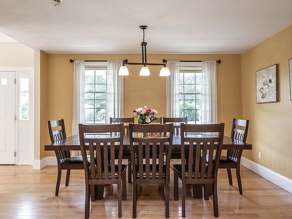 Welcome to 32 Christina's Path where you will fall in love with this Colonial style home located in a beloved & quaint cul-de-sac! This home has amazing curb appeal with a farmer's porch & a white picket fence! As you walk through the front door you will quickly fall in love with how much natural sunlight this home brings in along with the large open floor plan & gleaming hard wood floors. Boasting with space which includes an office, formal dining room and a large kitchen overlooking into the family room! The second floors offers 4 bedrooms which include 2 primary suites! Your backyard oasis awaits you with a newly installed above ground pool, extended deck, fire pit area & its fully fenced in! This is the perfect home for all of your backyard BBQ's & holiday parties! This home also includes second floor laundry, 2 brand new central air condensers, newly installed carpets, 2 bay garage, town water, town sewer & natural gas!