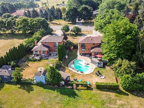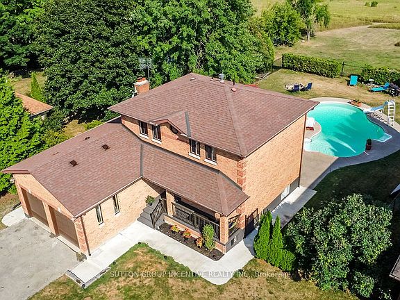 Resort style living. Leave the world behind when you step in the doors and gaze at the never ending beautiful view. Outdoor living space allows for lazy pool days (heated inground), great bbqs on O/S Deck-parties and sitting around the camp fire at night. Hot Tub. Gas BBQ hookup. Close Proximity to 400 makes commuting to Toronto or cottage country super easy. Walk out the back and in minutes explore a tree fort, Cookstown library which is fantastic for families (splash pad, pickleball, hockey rink, exercise trails, dog walk, year round social events as well as the Cookstown curling club. Bonus sun room makes an excellent buffet/bar station when entertaining. Chefs kitchen equipped with Viking 6 burner gas range with commercial stainless hood, Viking warming oven which makes entertaining a breeze (never serve luke warm food again), pot filler and lots of counter space, plus the view when washing dishes is fantastic. Main Floor Living Room, Family Room with Wood Burning Fireplace & Dining Area. Office was built for stock trading, reinforced wall allows for easy installation of multiple monitors (counted as 3rd- main floor bedroom). Master has luxurious top of line walk in shower with rain shower nozzle, 6 additional shower jets plus shower wand for the ultimate immersive experience, (2) large walk in closets, gas fireplace & balcony off bedroom is a great spot to enjoy the views while having your morning coffee. 2nd Bdrm & 4pc on upper floor. Lots of cozy nooks to relax with a book or glass of wine. Tons of storage, big deep closets, basement tool room can be easily converted to wine cellar, entire vault room for prized possessions, safe room?. 3 Bdrms & 4pc in Basement (newly finishing flooring & Paint). Large Coldroom. Lots of outlets everywhere (even in closets). Garage with high doors converted to shop (gas heater) with tons of storage and work space Big long driveway makes parking campers, RV's and trailers a breeze.