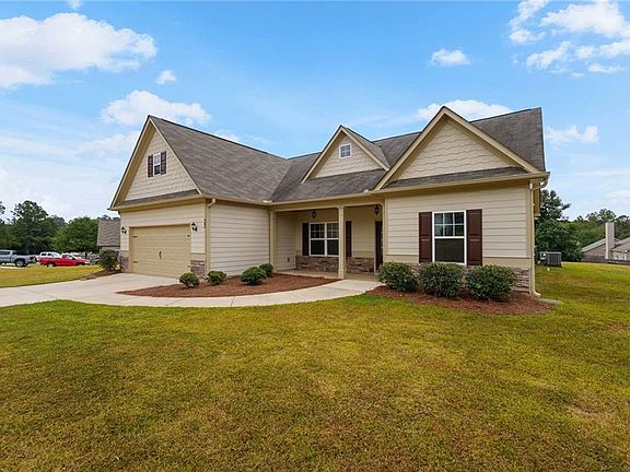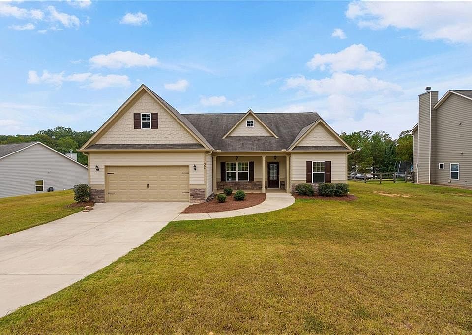 Move right in fresh paint and fresh flooring. This Beautiful Ranch home (no stairs) has a darling covered front porch entry and an extra-long driveway for plenty of parking. Upon entering the home, you will find a very open concept with a large dining room to your left and a kitchen to your right. The beautiful family room is centered with a fireplace view. The master bedroom is on one side of the home, and the three other bedrooms are on the other side. The mudroom is located just off the garage with a laundry area. With both a large front and back yard, this is a perfect home with plenty of play space for kids and pets. This is the perfect home in a beautiful low-cost HOA community.