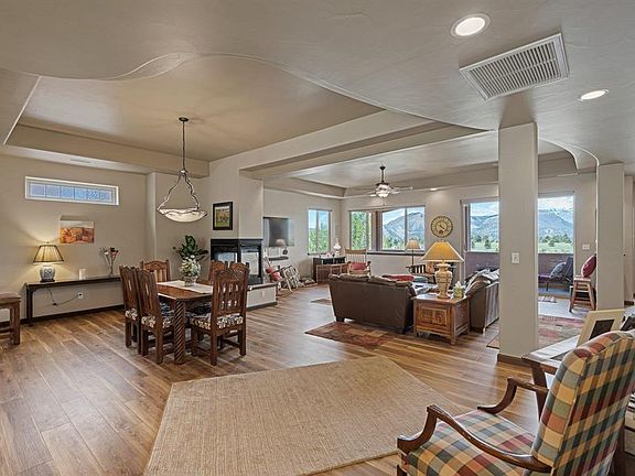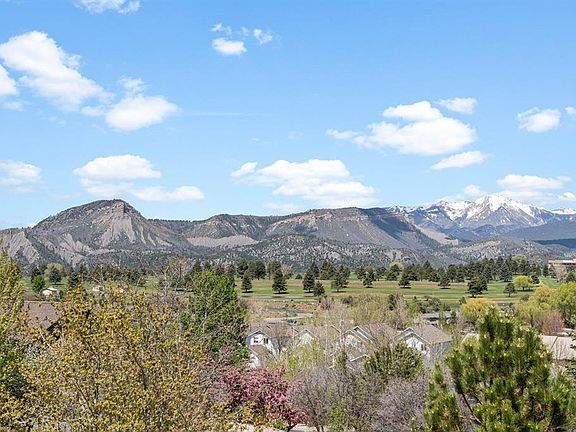 Spectacular panoramic La Plata Mountain and Golf Course views from this luxurious in-town top floor end unit condo in Skyridge Estates. Vista Grande condos offer carefree easy living close to Downtown Durango. Only 2 units in each building, one on the full lower level and one on the full top level. Oversized deep 2-car garage that can fit 4 cars or have plenty of room for a workout area, more storage, etc. Convenient elevator or stair access to this beautiful top floor unit. You'll be amazed at the spacious and welcoming great room design with tall beveled ceilings, see-through gas log fireplace, and a wall of widows with views that will take your breath away. Relax on the large covered front deck off the living room overlooking the Mountains and Golf Course. Large chef's kitchen with cherry wood cabinets. Custom bar with wine cooler and mini-refrigerator is the perfect way to entertain. Nice private covered patio off the kitchen for the perfect place to enjoy your morning coffee or to barbeque. You will love the large Primary Suite which is very private and separate with another gas log fireplace, oversized walk-in closet, private oversized covered patio, all with the same fantastic views of the Mountains and Golf Course to enjoy waking up to every day. The Primary Suite bath is an oasis of luxury with small gas fireplace, separate jetted tub to relax in, large walk-in shower, dual sinks and heated travertine floor. The 2 guest bedrooms are down a separate hallway for privacy and are serviced by a full bath. One of those bedrooms is currently used as a home office with a stunning copper ceiling, custom lighting, and double french glass doors. Enjoy the comfort of central A/C. Don't miss experiencing this very special location, schedule your private tour today.
