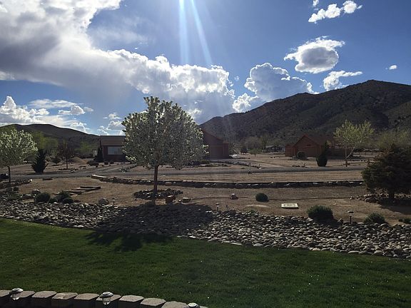 Central vac, all electric, propane water heater, wood fireplace insert, paved street, cement driveway, cement walk way around 3/4 of the home. RV garage + 2 car attached garage, mature fruit trees, drip water and auto watering system. Tuff Shed storage building rear property. Two acre parcel. Great views of Smith Valley. Quiet, peaceful & great neighbors.