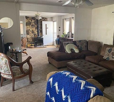 - Interior Features: Walk-in Closets, Ceiling Fans, Wood Burning Stove, Flooring- Carpet, Flooring- Linoleum/Vinyl