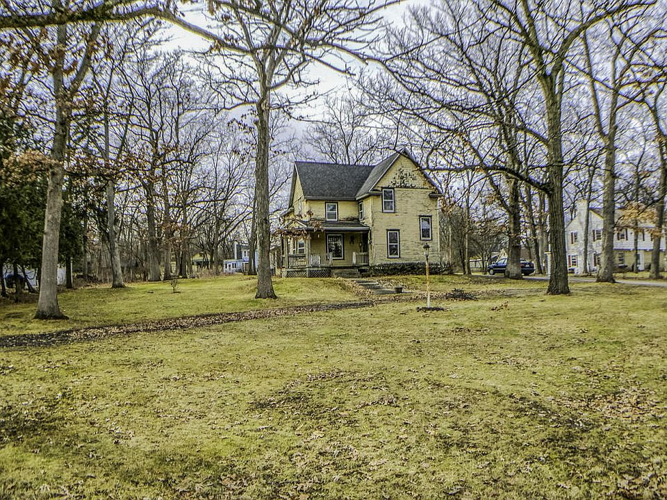 Turn of the century, farmhouse style home within walking distance to the lake, restaurants & new school. Hardwood floors, natural fireplace, and original staircase. The main floor has an eat-in kitchen and formal dining room opening to the living room; 4 bedrooms and a full bath upstairs. Recently updated roof and furnace. Screened patio and bay window display the 1 acre lot. Home has great potential in need of updates, lending itself to your unique vision.