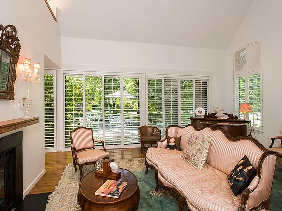 Oh, the gatherings you'll enjoy in this lovely home, where the glow of a chandelier presiding over the foyer is matched only by the glow of the see-through fireplace warming the dining area and living room big enough for a baby grand. A wall of floor-to-ceiling windows and sliders frame a serene view of the park-like backyard, where a stone patio shaded by specimen trees invites al fresco dining and entertaining. Open the doors to let music out, and birdsong in!The first floor master bedroom suite with his and her closets, spa bath with a kiss of 1950's glam, and a fireplace to warm the sleeping and sitting areas, also looks out on the patio. The laundry room and kitchen nearby, plus the upstairs master suite, family room and office, complete the floor plan. Solid wood plantation shutters on all windows and doors, wood floors throughout, and walls freshly painted gallery white (the perfect backdrop for the masterpieces you've spent a lifetime collecting!) infuse this Constitution Hill home near downtown Princeton with casual yet stylish elegance.