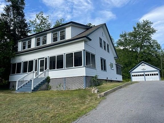 CIRCA 1920 GAMBREL FARMHOUSE LOCATED IN MADISON VILLAGE WITH 6.51 ACRES AND A NEW FOUR BEDROOM SEPTIC SYSTEM! This completely renovated home has a recent asphalt shingled roof, vinyl clapboard siding, and a welcoming front porch the length of the house. Inside you will see gorgeous wood floors (mostly maple). Much of the woodwork is older and reflects the period in which the house was built. There is a remodeled kitchen with white cabinetry, dining room, which opens to the kitchen and living room, fireplaced living room, spacious first floor bedroom, and 3/4 bathroom with a stack washer and dryer. A private home office located off the back entrance hall is ideal for a home business. Upstairs are three very large bedrooms with extra large closets and a full bathroom. Second floor wood floors will need to be refinished and will be lovely. There is a full basement with a newer Trio forced hot water boiler. The wiring and the plumbing were redone about 10 years ago. Property includes a detached two car garage with a large storage area off the back. Property is located 10 minutes from King Pine Ski Area and Conway Village but only five minutes to beautiful Silver Lake. Great for animals and children to enjoy the six plus acres of land. Land abuts property owned by the town of Madison, on which the Madison Cascades flow. Special in town property!!