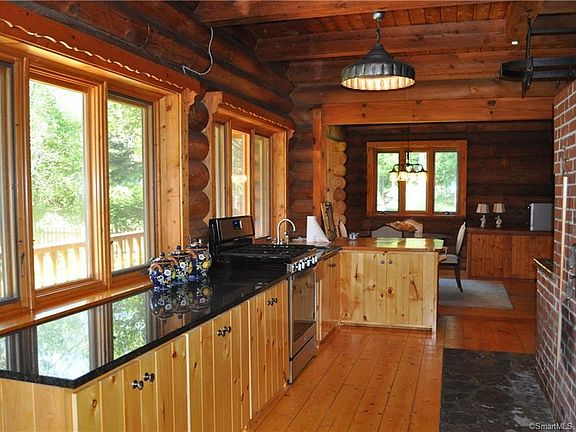 A storybook log cabin on beautiful private land with many out-buildings, summer kitchen and arbors. A perfect artist or writer's retreat. Interior is rustic log walls, insulated, enormous brick oven, fire-fueled sauna, updated kitchen with new appliances, updated bath. Split log hardwood floors, balconies, LR and DR, Master Bath on first floor.