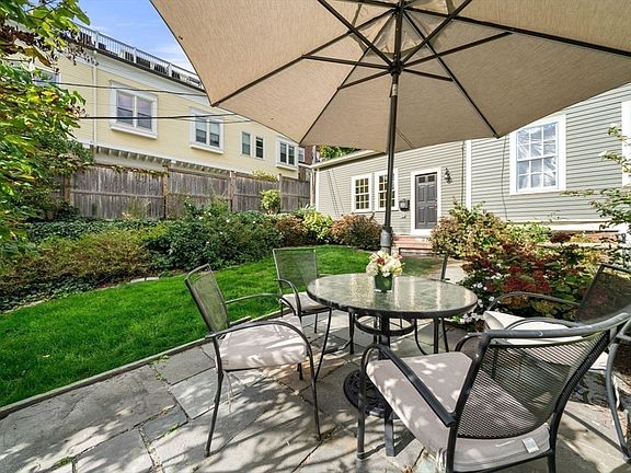 Located in the Hyde Mansion on Cordis Street, this rarely available, separate entrance 2BR/1.5BA duplex lives like a charming single-family home. Lush gardens surround the property, with beautiful rose and hydrangea bushes, Rose of Sharon and others. The home has recently gone through a major renovation, including many high-end finishes. The chef’s kitchen features a SubZero refrigerator, Wolf 6-burner gas range w/hood, Bosch dishwasher and gorgeous custom cabinetry. The charming living room with handsome mantel has lovely built-ins and flows into a spectacular dining space with vaulted ceiling and old beams. Hidden behind flush doors are a well-appointed half BA and laundry room with stack W/D and cabinetry w/stone folding counter. Upstairs are two ample size bedrooms with garden views and a full bathroom with marble topped double vanity, tub/shower w/white tile surround, and linen closet. Exclusive basement area w/600 sf +/- for systems and storage. 2-car rental parking nearby.