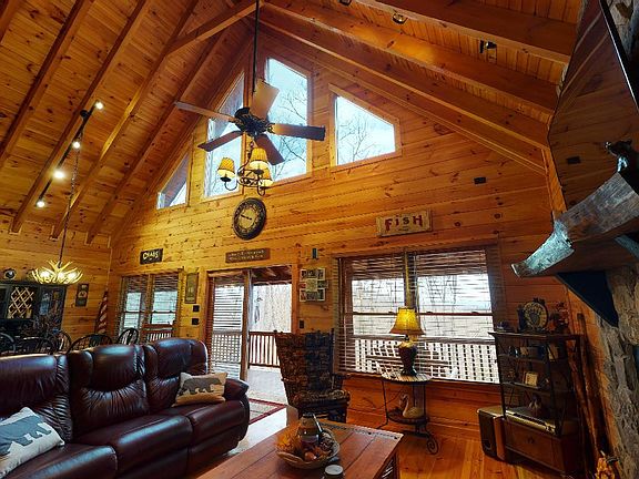 THE SPACIOUS LOG SIDED CABIN IN THE NORTH GEORGIA MOUNTAINS THAT YOU ARE SEARCHING FOR IS NOW AVAILABLE! This immaculate cabin offers an open floor plan with a greatroom with soaring beamed ceilings & stone fireplace, beautiful wood interior, walls of windows creating a light atmosphere, family/game room with stone fireplace, large decks on lower & upper levels, covered entertainment area on upper deck, large loft, master and laundry on main, second master upper level, 2 bedroom, bath lower level and a stone firepit area. PLUS BIG MOUNTAIN VIEWS!! Located in Laurel Brooke, gated community ,close to BLAIRSVILLE & BLUE RIDGE, MINUTES TO LAKE.