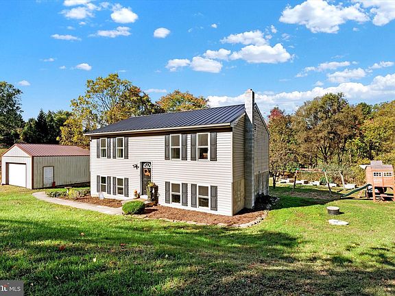 Discover your perfect escape with this updated bilevel home nestled on a peaceful 1-acre lot. Designed for those seeking a rural lifestyle with modern comforts, this home offers a serene setting where you can unwind and connect with nature. This home features newer windows and vinyl siding, a new metal roof and a 24' x 32' pole barn for all your storage needs. The main level includes 2 bedrooms, a full bath, and an open kitchen/dining/living room. Downstairs boasts a room that is currently used as the primary bedroom suite, an office, full bath and laundry, plus the garage has been turned into a family room. Enjoy spending time outside with the raised gardens, chickens, Apple, Pear and Peach Trees, Blueberry bush and Grapevines, and exploring the stream or listening to the sounds of the countryside. Whether enjoying a quiet cup of coffee in the morning on the deck or embarking on an outside adventure, this home offers simplicity and comfort.