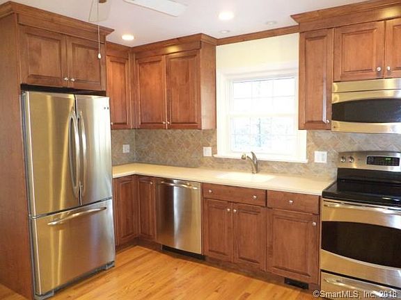 Great remodeled house with 3 bedrooms, 2 full baths, main floor bedroom and bath, fireplace, dining and eat in kitchen. Nearly new appliances (stainless), upstairs 2 bedrooms, with bath, full basement with washer and dryer. Oil tank, partial rec. area and hatchway exit. 1 car garage and parking area. Excellent condition!