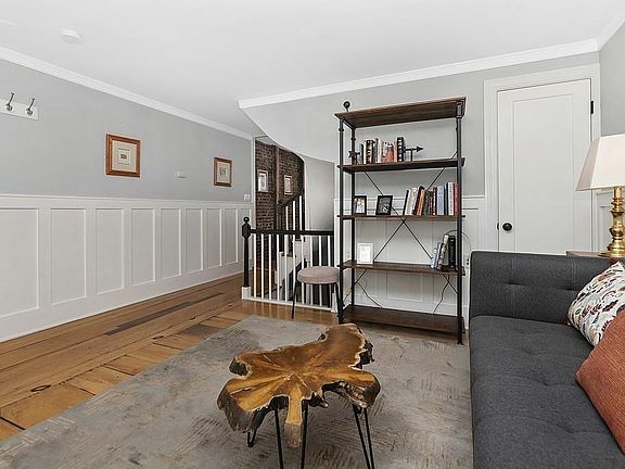 Centrally located, one block from Monument Square, this three bedroom, two and half bathroom single family home features an abundance of character and charm. This late 19th century worker's cottage has been tastefully renovated for today's living, while retaining some of Charlestown's history, including wide pine floors and exposed brick. The kitchen is equipped with granite countertops, white cabinetry, stainless steel appliances, a classic white farmers sink, and a picture window that overlooks the private fenced-in patio. The second floor hosts two bedrooms; one with an oversized custom-crafted, sliding barn door, as well as a complete wall of built-in shelving. The second bedroom is highlighted with wainscoting and an en-suite, full bathroom. The loft-like top floor currently serves as a home office and there is an additional bathroom with shower. The lower level features a family room, laundry/storage area and direct access to the patio.