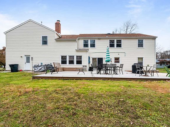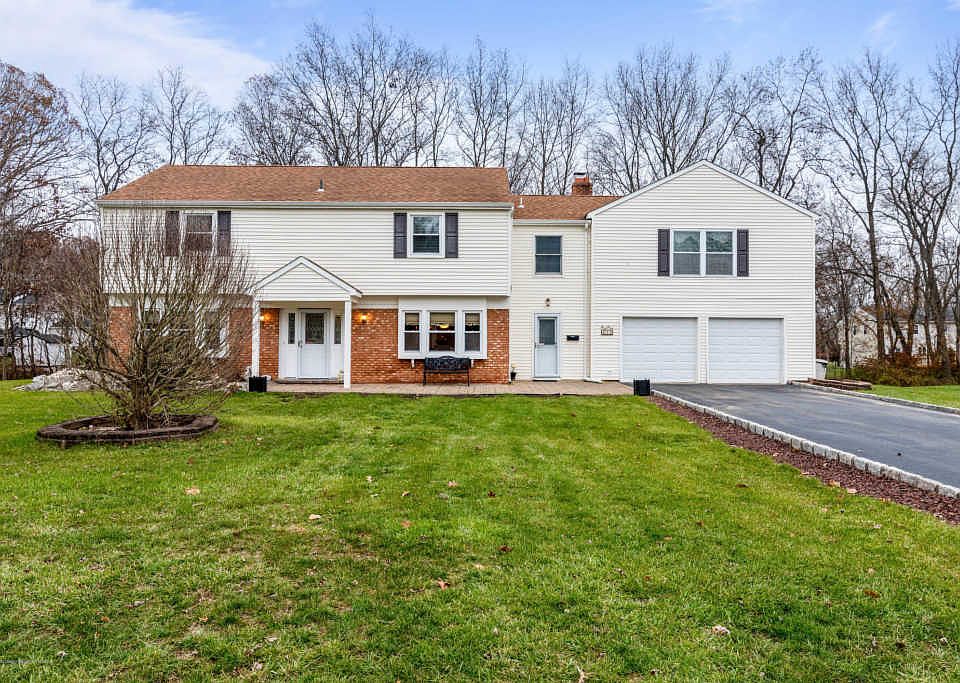 Nicely kept and well maintained 4/5 Bedroom Colonial on .82 acres of land on a cul-de-sac in Freehold Twp! This wonderful home features beautiful decorative mouldings & recessed lighting! Hardwood flooring in Foyer and Dining Room, dining room features custom mouldings & plenty of space for large family dinners. Relax in your cozy family room w/ custom wood burning fireplace and brick wall surround! Nice sized eat in kitchen with newer Stainless Steel Appliances & sliding door that leads to newer wood platform patio and large private and wooded back yard! Plenty of space for outdoor activities and entertaining. This home features 2 possible 2nd floor master suites! Newer 20x16 bedroom Suite features 2 WIC's & office that could possibly be converted to a full bath.