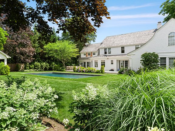 Nestled on a quiet street just moments from village amenities and the ocean, this inviting property has just been renovated to perfection and offers an exceptional outdoor living experience. An electric gated entry welcomes you to ample parking and a detached three-car garage. The property features a fully fenced backyard with a one-bedroom, one-bath guest house, a stunning gunite pool, large bluestone patio, outdoor grill, and al fresco dining area - ideal for summer entertaining. The beautifully landscaped garden and expansive front lawn, also fenced, provide privacy, space, and tranquility. Inside, the first level of the home is thoughtfully designed for comfort and functionality. It includes a living room with decorative fireplace, a family room with fireplace, and a library/sunroom. The formal dining room is perfect for hosting, while the well-appointed kitchen boasts a center island, abundant cabinetry, and a sunny breakfast nook. A first-floor laundry room adds convenience, and the powder room accommodates guests. The first-floor primary suite offers a peaceful retreat with a walk-in closet, luxurious en suite bathroom with dual sinks, shower, and tub, and private access to the backyard. Upstairs, the second level hosts two en suite guest bedrooms, plus two additional guest bedrooms with a shared bath. A full basement offers generous storage space to meet a variety of needs. With its blend of indoor elegance and outdoor amenities, this property truly delivers on every front.