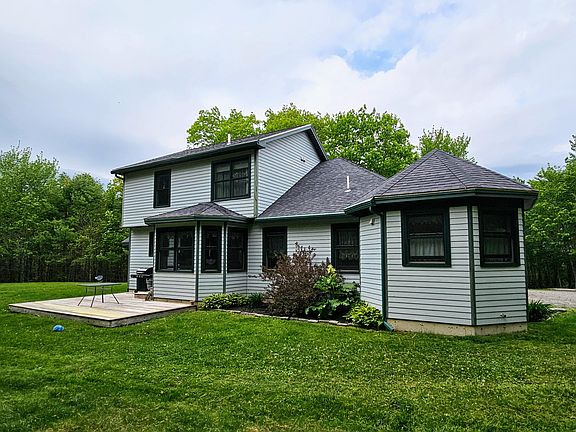 Peace and quiet on this gorgeous 5 acre parcel on a dead-end road. The well-maintained, original-owners house sits back off the road, with a large enough driveway and parking area to accommodate plenty of vehicles. You'll want to spend your summers at the fire pit seating area. True first-floor living can be had with this home, with the living room, half bathroom, kitchen, dining room, and primary suite on the first floor. The primary suite includes a walk-in closet and a full bath with a jacuzzi tub, separate shower, and towel warming bars. The second floor of the home contains two additional bedrooms and another full bathroom. The basement is finished with a den, a large recreation room, and an office. Although the laundry area is currently in the basement, it was originally in the mud room on the first floor and could be switched back there to complete your first-floor living experience. Enjoy additional amenities such as an attached 2-car garage, a garden shed near the fire pit seating area, a generator hook-up, and a central vacuum system.