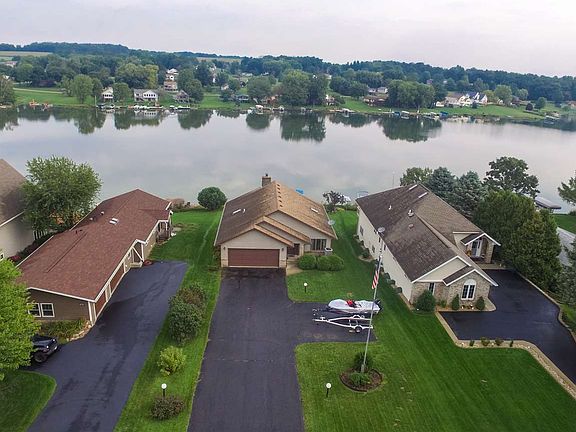 Lake Summerset Waterfront Home in Dakota School System. 2 Bedrooms, 2. 5 baths, 2 Car garage. Main floor laundry . Walk out level family room to your own 60' improved lakefront with dock and cantilever pier. Short easy walk to the dock. Open concept main floor with lake views from living room, dining area and kitchen. Main floor master bedroom with en-suite bath and sliding patio doors to the deck. Attached 2 car garage only one step down from combination mud room / laundry. Great fishing location and close to west gate and beach/pool.