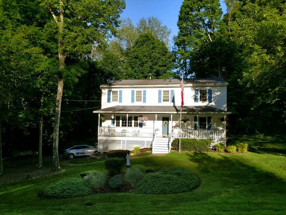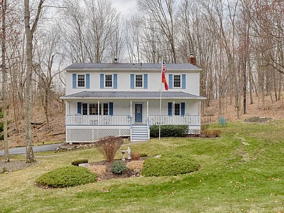 Well maintained colonial located on a cul de sac near golf course, public transportation, minutes to two town parks. Large living room with fireplace and wood insert, dining room, extra large kitchen with plenty of cabinets, breakfast area and sliders looking out to the woods and deck! 4 large bedrooms with master suite, master bath. Remodeled baths, full basement with plenty of storage, laundry area and two car garage. Central Air throughout the home.