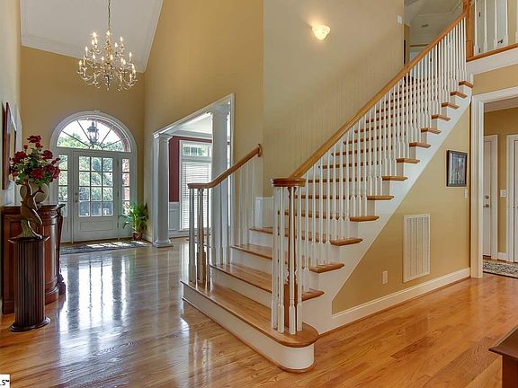 Must See to Believe! This Gorgeous Custom Home gives the feeling of being in your own Private Resort. Located on a wooded lot in the Popular Berkshire Park in Pebble Creek on the 16th hole of Creek-Side Golf Course, with a Spectacular view of the Fairway and the 16th green, with a private pool, and an aluminum fenced back yard. This 'Well-Built' 4 Bedroom home is 4-sided brick with a 3-Car Side-Load garage, Grand 2-story Foyer, Vaulted Ceilings in Foyer, Great Room, & Sun Room, and Upgraded Crown Molding throughout the entire house...the master bedroom suite is on the main level! Stunning Gourmet Kitchen with Sun room features built in Double Wall ovens, stainless appliances, Floating Island, Granite countertops, Upgraded Cabinets with pull out shelves in the lower cabinets, Crown Molding, Knobs, Tilt Drawers by the sink, Pull-Out Garbage Can, Walk-In Pantry, And Kitchen Planning Desk. Sparkling hardwood floors throughout the main floor and staircase. All full baths and Laundry Room have upgraded Tile and cabinets, and all bedrooms have Carpet. Beautiful master Bedroom has Double Tray Ceiling with Bump-Out for sitting area, separate Glass Surround Shower, Jetted Tub, His & Hers Raised Vanities and Walk-In Closets. The back of the house is a Natural Light Lover's Dream. Floor to ceiling windows in Sun room, Great Room, Formal Dining Room & Library. Large deck overlooks pool, patio, wooded lot, golf course and has a natural gas hook-up for a grill. Bonus Room upstairs along with 3 bedrooms with raised vanities, one has a private bath, and 2 are connected by a Jack-n-Jill bath with separate raised vanities and walk-in closets.