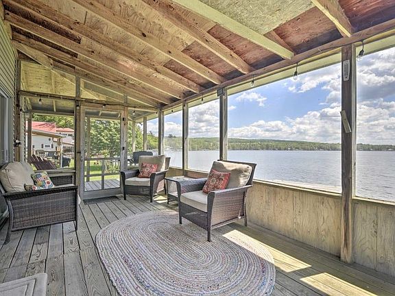 Welcome to your ultimate lakeside retreat on Lake Carmi! This stunning, seasonal, 3 bed, 2 bath home is the perfect blend of modern amenities and rustic charm. With expansive lake views, screened in porch, a private concrete dock, and its own solar powered boat lift, this home truly has it all. As you enter the home, you'll be greeted by the warm and inviting feel of the exposed live edge beams that add a touch of character to this lakefront getaway. The spacious living room boasts ample natural light and stunning panoramic lake views through your double sliding glass doors. The dining area is the perfect spot for sharing a meal while enjoying the picturesque scenery. The comfortable bedrooms each have their own unique charm and character, offering a serene escape from the stresses of everyday life. Primary and secondary bedrooms feature breathtaking lake views that will make you feel as if you're waking up in paradise every morning. The concrete dock provides the perfect place for boating, fishing, and all your favorite water activities. The screened-in porch is the perfect spot to relax and unwind, enjoying the peaceful serenity of lakefront living. This stunning lakeside retreat is a must-see, offering the perfect balance of modern amenities and natural beauty. Schedule your showing today and start living your lakeside dream! Property is active Short Term Rental -- 2023 bookings total $14,000+ and may convey/terminate based on Buyers preference