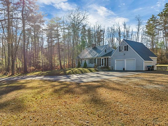 This charming 2 story Cape set on 2.42 wooded acres and within 15 minutes to Rte 93, Exit 20, is the perfect place to call home! With a spacious, private yard in a desirable location close to Lake Winnisquam and Gunstock Mountain, this 2076 sq ft home offers endless possibilities as your primary or vacation residence located in the Lakes Region. Perfect for first time homebuyers, families or retirees with space for everyone. The kitchen, family room with fireplace, formal dining room, living room with fireplace, laundry, 3/4 bath with shower, bedroom/office and screened in sunroom, are all on the main level. Upstairs, the Primary bedroom has a fireplace, and a second bedroom with a full bath in-between. Over the attached 2 car garage with a pellet stove is a FROG, ( Family Room Over Garage) for kids, guests, or hobbies! This home has hardwood floors with recent new carpeting, a full house Generator and Metal roof both in 2022 and Central AC in 2023. Under the carpet you will find hardwood floors! Outside is a perfect place for Summer barbecues as the backyard is private, and backs up to a golf course through the woods. Two newer sheds with electricity are ready to be filled with your equipment and toys. If you are looking for a peaceful lifestyle surrounded by lakes and mountains with many year round events and activities, click on the Unbranded Url 1 under the photo to see an aerial video, floor plan and tour for more detailed information. Welcome home!