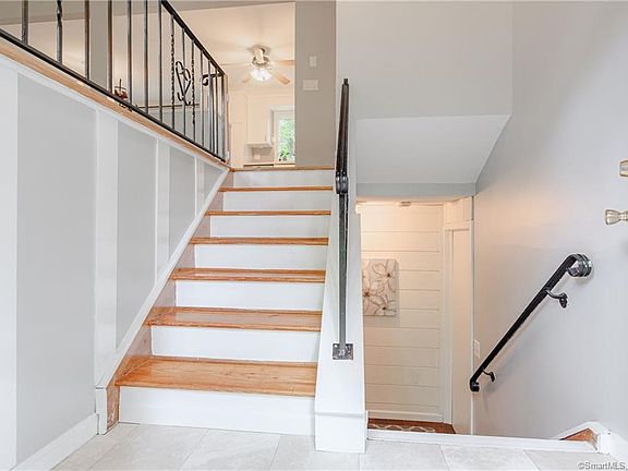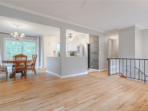 Welcome home to beautiful 32 Dick Finn Road. This updated Raised Ranch is located just minutes from New Fairfield Town Center and Candlewood Lake. This home has an open floor plan with original hardwood floors throughout the main level, crown molding and freshly painted interiors. The custom designed kitchen has Corian countertops and stainless steel appliances with views to the beautiful, level backyard. The fully finished basement has engineered hardwood floors and a walk out to a patio and backyard. This home is located in a quiet neighborhood, and the lightly wooded, corner lot is perfect for outdoor enjoyment. The septic tank is 5 years old, the boiler and water heater are 3 years old. Close to schools, shopping, restaurants and great NY commute location! The fully finished, heated basement adds an additional 330 square feet of living space.