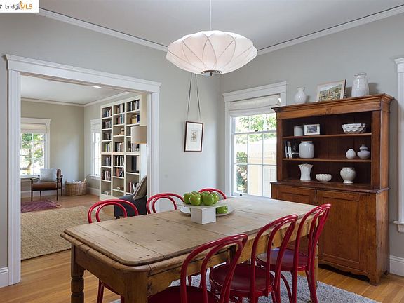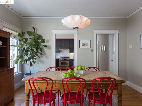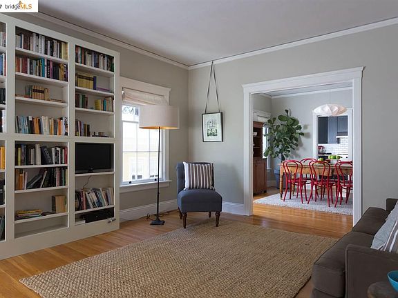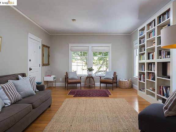 An elegant Claremont condo jewel! This sunny 2-bedroom, 1-bath flat has oak floors and formal living and dining rooms with ample windows and verdant views. The updated eat-in kitchen has a chef's oven, farmhouse sink, tile backsplash and plentiful cabinetry. The rear bedroom has a west-facing view and is flooded with light. Amenities include a walk-in closet and dressing room with built-in drawers, basement storage room, and both in-unit and common-area laundry. The large sun-drenched deck overlooks a protected creek habitat, making it a great place to read or relax with a cup of tea. This beautiful 1920s building is on a tree-lined street in one of Berkeley's finest neighborhoods. Conveniently located adjacent to the Claremont Hotel, across from Oak Park, near UC Berkeley, BART, Elmwood, and Rockridge, and a short jaunt to Domingo neighborhood shops, Star Grocery, cafes, restaurants, Berkeley walking paths and more. FEATURES INCLUDE -Sunny 2-bedroom, 1-bath -Hardwood floors throughout -Updated eat-in kitchen -Tiled bath with tub -Large walk-in closet -In-unit laundry closet in hall -Basement storage unit -Large, common-area deck